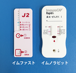 当院では、血液中のIgEと呼ばれるたんぱく質の濃度を測定することで、アレルギーの原因を調べる検査を行っております。大学病院などでも実施されている以下のような、採血によるアレルギー検査 CAP-RAST(最大13項目)や、多くのアレルゲンの検査が可能なViewアレルギー検査(39項目)のほかに、数滴の血液でアレルゲンを調べられる検査 イムファスト(3項目)や、イムノラピット(8項目)を行うことができます。